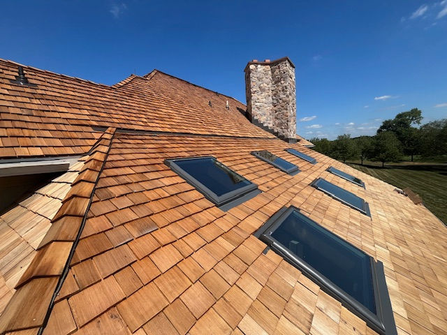 Cedar roofs offer significant benefits, including exceptional longevity (30-50 years), superior natural insulation, resistance to insects, rot, and wind, enhanced curb appeal and home value.