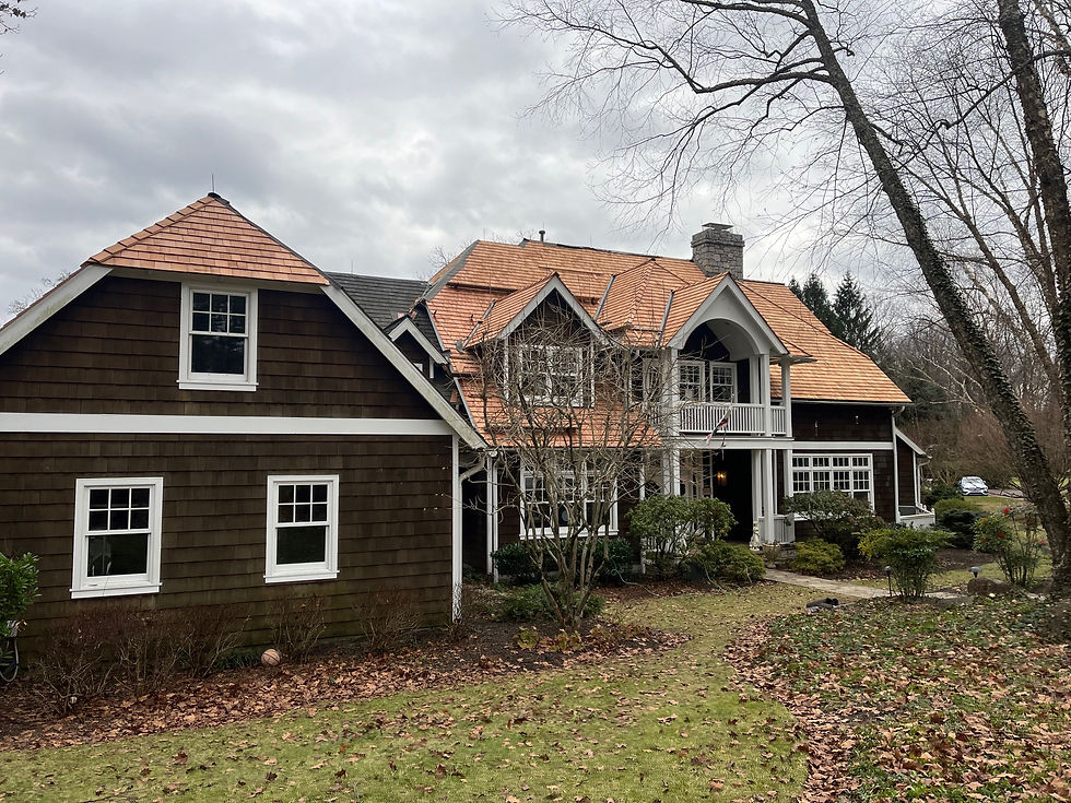 New Hope PA 24" Heavy Handsplit shakes at 7 1/2" exposure with cedar breather and felt paper
